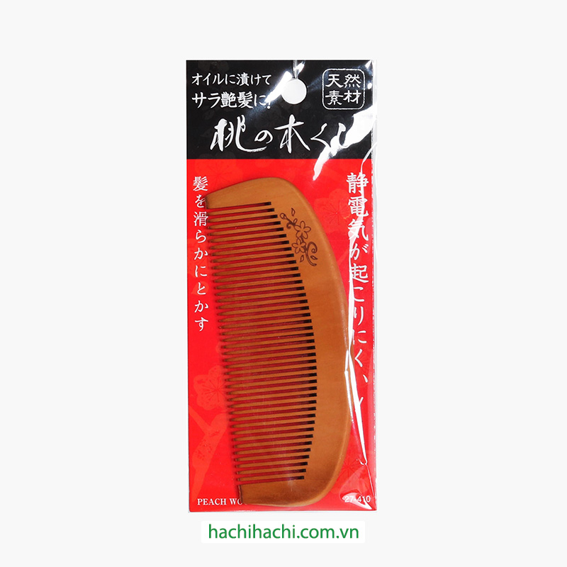| Hướng dẫn sử dụng | Lược được làm bằng gỗ cây đào với bề mặt trơn láng, hạn chế lực hút tĩnh điện làm rối tóc, giúp chải tóc suôn mượt. Thiết kế nhỏ gọn tiện mang theo khi cần dùng. Chất liệu dày chắc, sử dụng dài lâu. HDSD: Dùng chải tóc như thông thường. Hoặc tẩm dầu dưỡng tóc vào lược để dưỡng tóc óng mượt tự nhiên: Dùng giấy nhám chà để làm mất lớp phủ trên lược. Đặt lược trên tấm màng bọc thực phẩm, đổ lượng dầu dưỡng tóc phù hợp lên lược. Gói lược lại, cho vào túi Zip ủ khoảng 3 ngày - 1 tuần. Sau đó lấy ra, dùng khăn giấy lau sạch lượng dầu thừa, phơi khô khoảng 1 ngày rồi dùng chải. Nên vệ sinh lược sạch sau mỗi tháng sử dụng và tẩm dầu dưỡng lặp lại. |